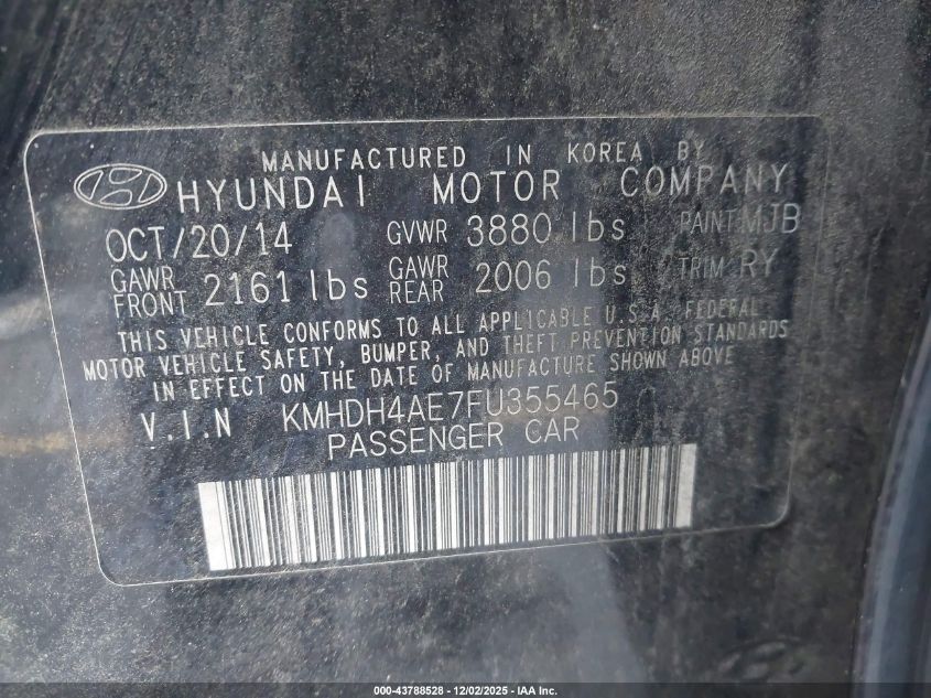 2015 HYUNDAI ELANTRA 2015 року Бензин, 1.8, Передній привід, vin - KMHDH4AE7FU355465 з США