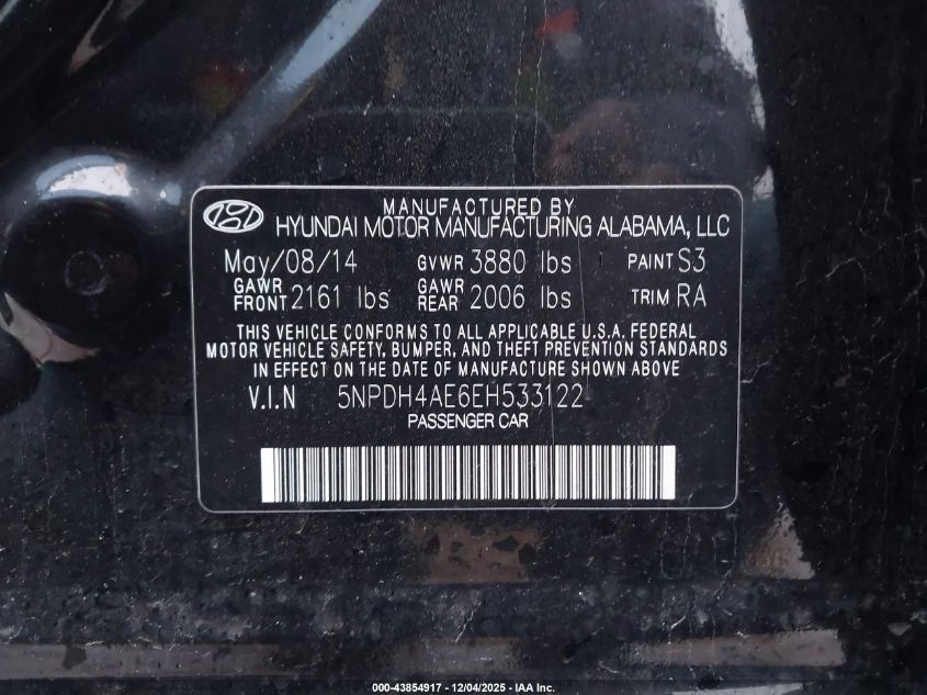 2014 HYUNDAI ELANTRA 2014 року Бензин, 1.8, Передній привід, vin - 5NPDH4AE6EH533122 з США