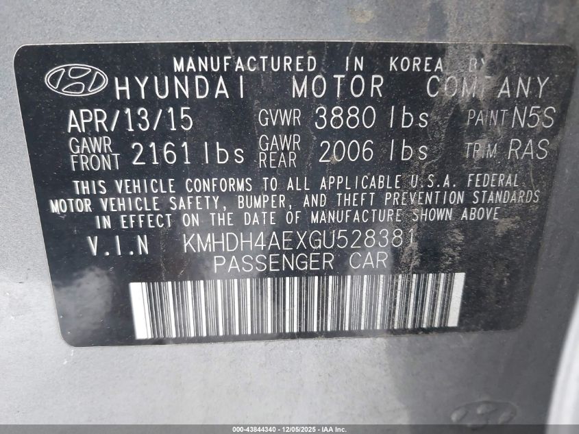 2016 HYUNDAI ELANTRA 2016 року Бензин, 1.8, Передній привід, vin - KMHDH4AEXGU528381 з США