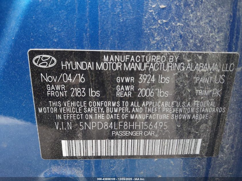 2017 HYUNDAI ELANTRA 2017 року Бензин, 2.0, Передній привід, vin - 5NPD84LF8HH156495 з США