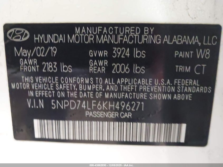 2019 HYUNDAI ELANTRA 2019 року Бензин, 2.0, Передній привід, vin - 5NPD74LF6KH496271 з США