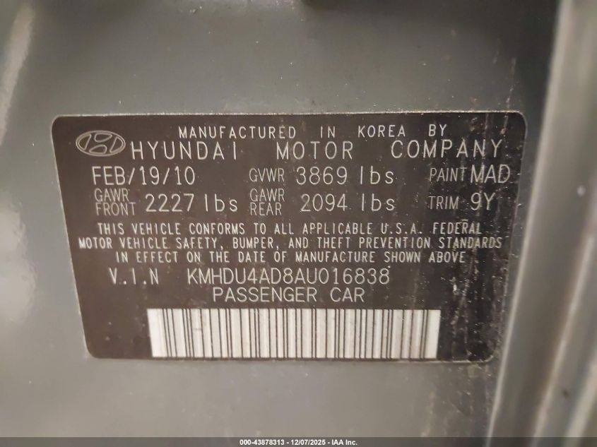2010 HYUNDAI ELANTRA 2010 року Бензин, 2.0, Передній привід, vin - KMHDU4AD8AU016838 з США