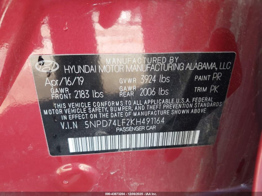 2019 HYUNDAI ELANTRA 2019 року Бензин, 2.0, Передній привід, vin - 5NPD74LF2KH491164 з США