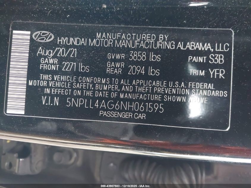2022 HYUNDAI ELANTRA 2022 року Бензин, 2.0, Передній привід, vin - 5NPLL4AG6NH061595 з США