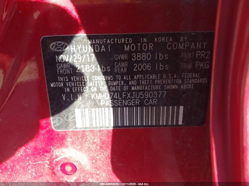 2018 HYUNDAI ELANTRA 2018 року Бензин, 2.0, Передній привід, vin - KMHD74LFXJU590377 з США