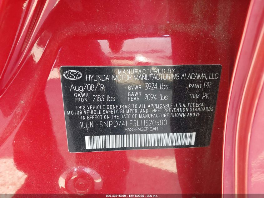 2020 HYUNDAI ELANTRA 2020 року Бензин, 2.0, Передній привід, vin - 5NPD74LF5LH520500 з США