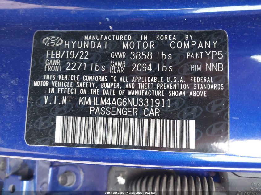 2022 HYUNDAI ELANTRA 2022 року Бензин, 2.0, Передній привід, vin - KMHLM4AG6NU331911 з США