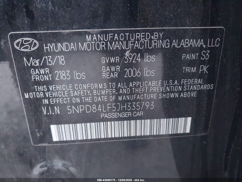2018 HYUNDAI ELANTRA 2018 року Бензин, 2.0, Передній привід, vin - 5NPD84LF5JH335793 з США