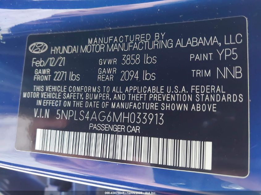 2021 HYUNDAI ELANTRA 2021 року Бензин, 2.0, Передній привід, vin - 5NPLS4AG6MH033913 з США