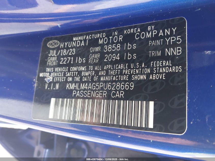 2023 HYUNDAI ELANTRA 2023 року Бензин, 2.0, Передній привід, vin - KMHLM4AG5PU628669 з США