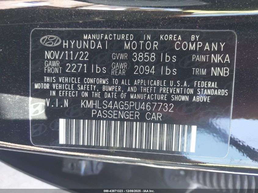 2023 HYUNDAI ELANTRA 2023 року Бензин, 2.0, Передній привід, vin - KMHLS4AG5PU467732 з США