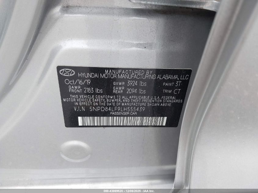 2020 HYUNDAI ELANTRA 2020 року Бензин, 2.0, Передній привід, vin - 5NPD84LF9LH555439 з США