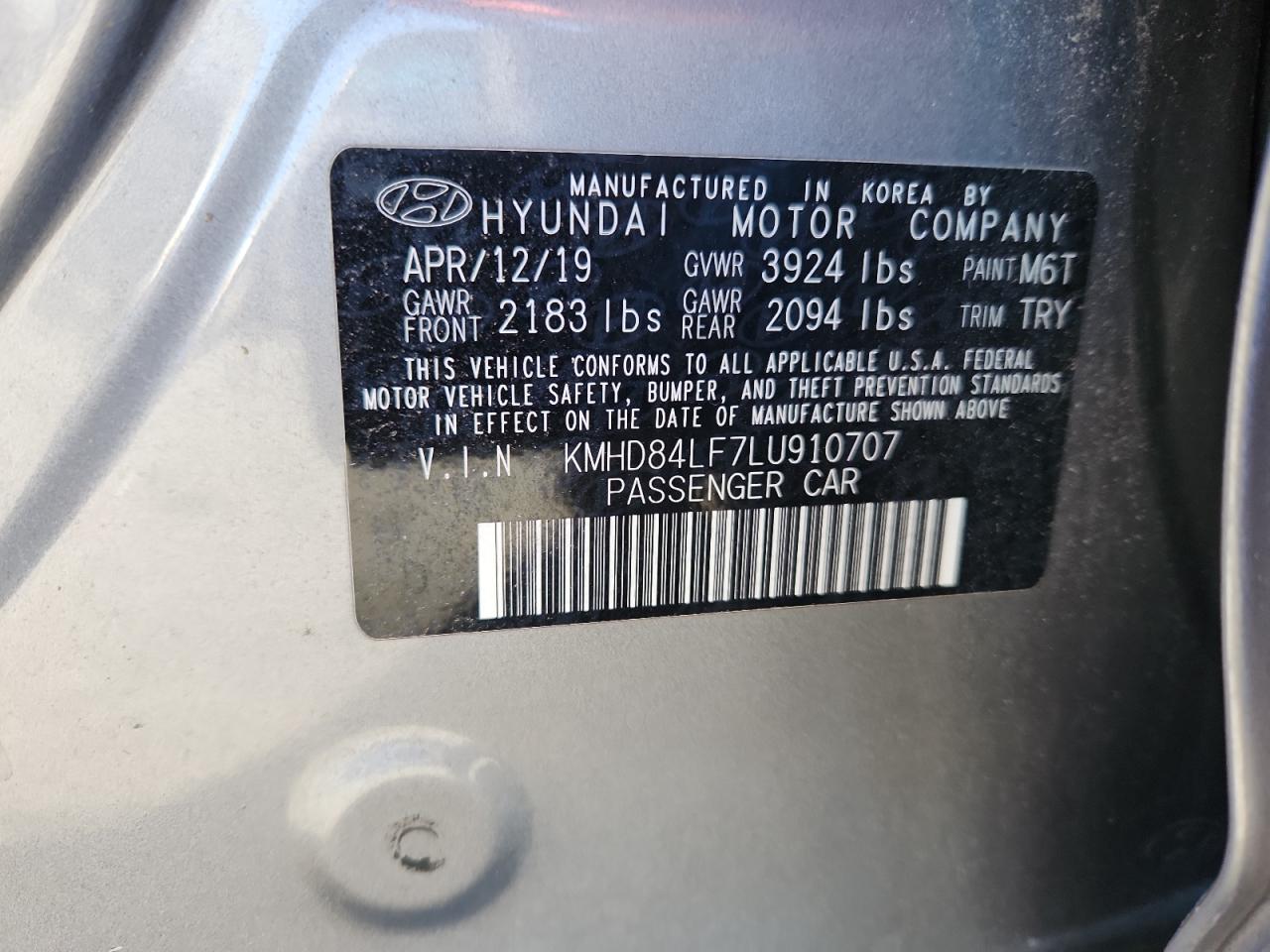2020 HYUNDAI ELANTRA 2020 року Бензин, 2.0, , vin - KMHD84LF7LU910707 з США