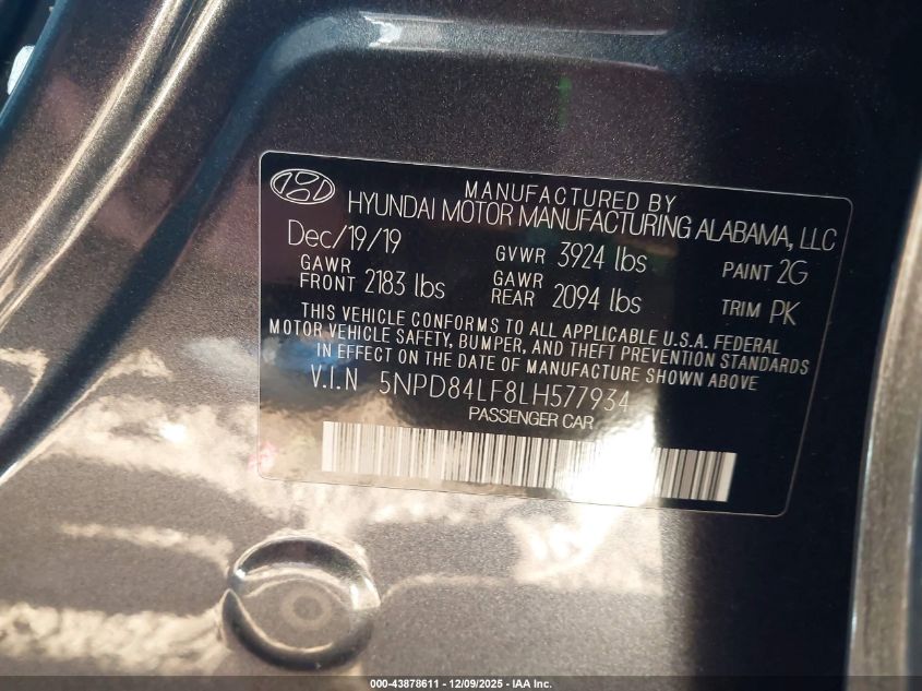 2020 HYUNDAI ELANTRA 2020 року Бензин, 2.0, Передній привід, vin - 5NPD84LF8LH577934 з США