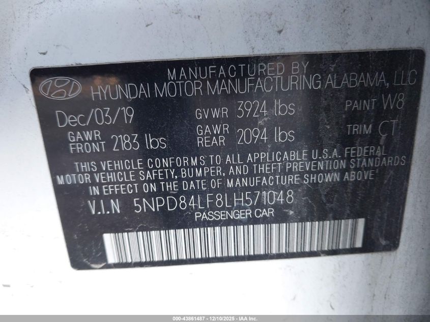 2020 HYUNDAI ELANTRA 2020 року Бензин, 2.0, Передній привід, vin - 5NPD84LF8LH571048 з США