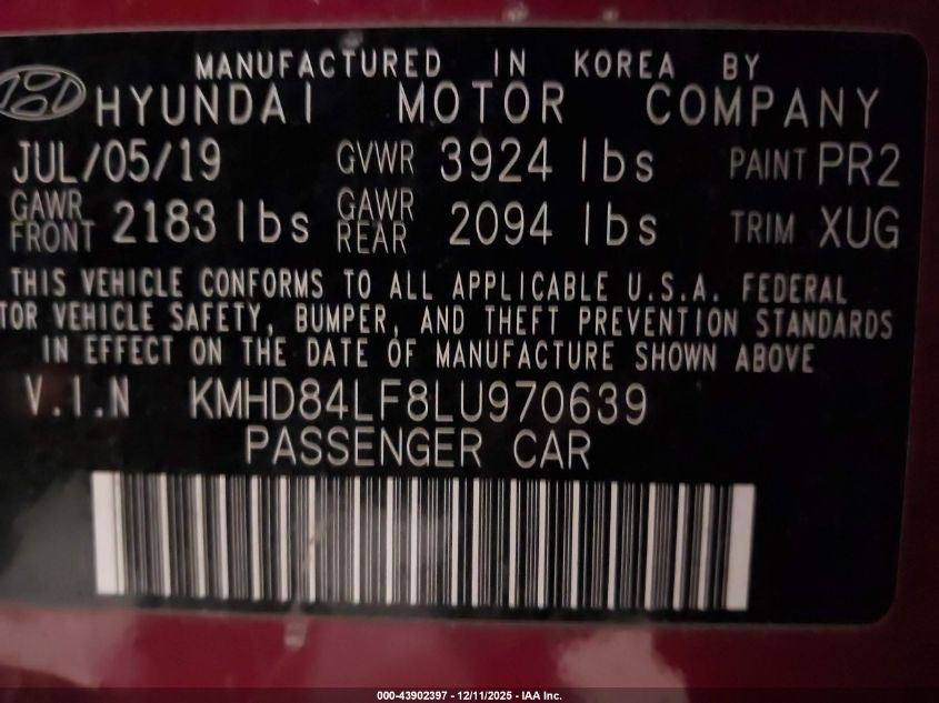 2020 HYUNDAI ELANTRA 2020 року Бензин, 2.0, Передній привід, vin - KMHD84LF8LU970639 з США