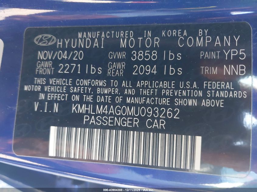 2021 HYUNDAI ELANTRA 2021 року Бензин, 2.0, Передній привід, vin - KMHLM4AG0MU093262 з США