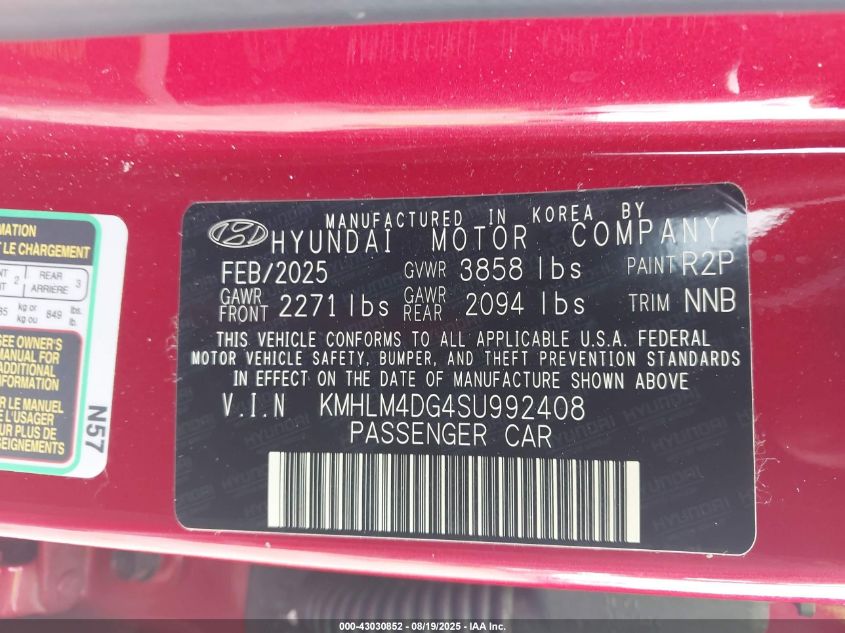 2025 HYUNDAI ELANTRA 2025 року Бензин, 2.0, Передній привід, vin - KMHLM4DG4SU992408 з США