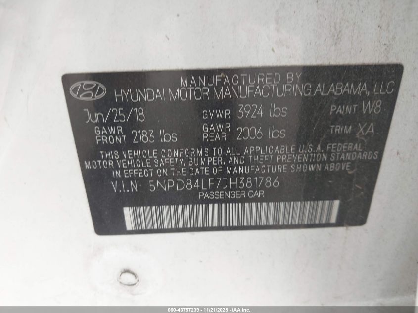 2018 HYUNDAI ELANTRA 2018 року Бензин, 2.0, Передній привід, vin - 5NPD84LF7JH381786 з США