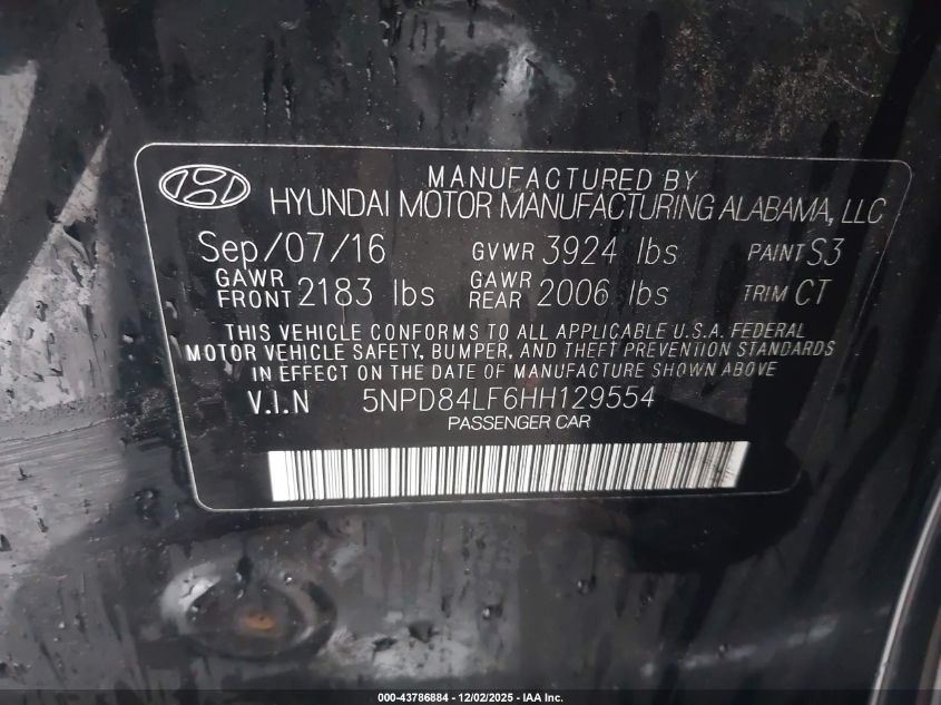 2017 HYUNDAI ELANTRA 2017 року Бензин, 2.0, Передній привід, vin - 5NPD84LF6HH129554 з США