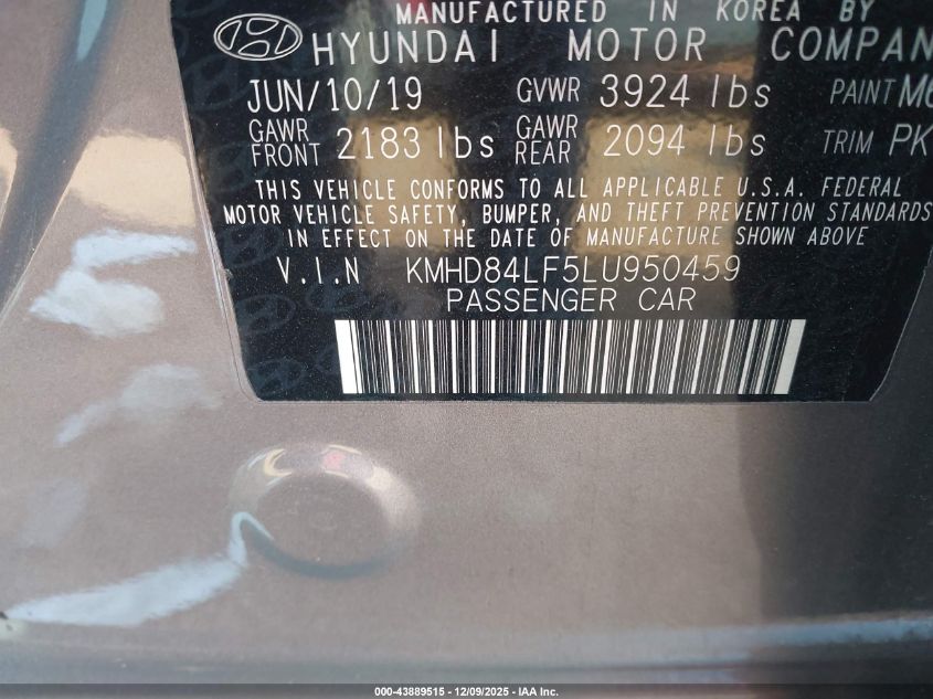 2020 HYUNDAI ELANTRA 2020 року Бензин, 2.0, Передній привід, vin - KMHD84LF5LU950459 з США