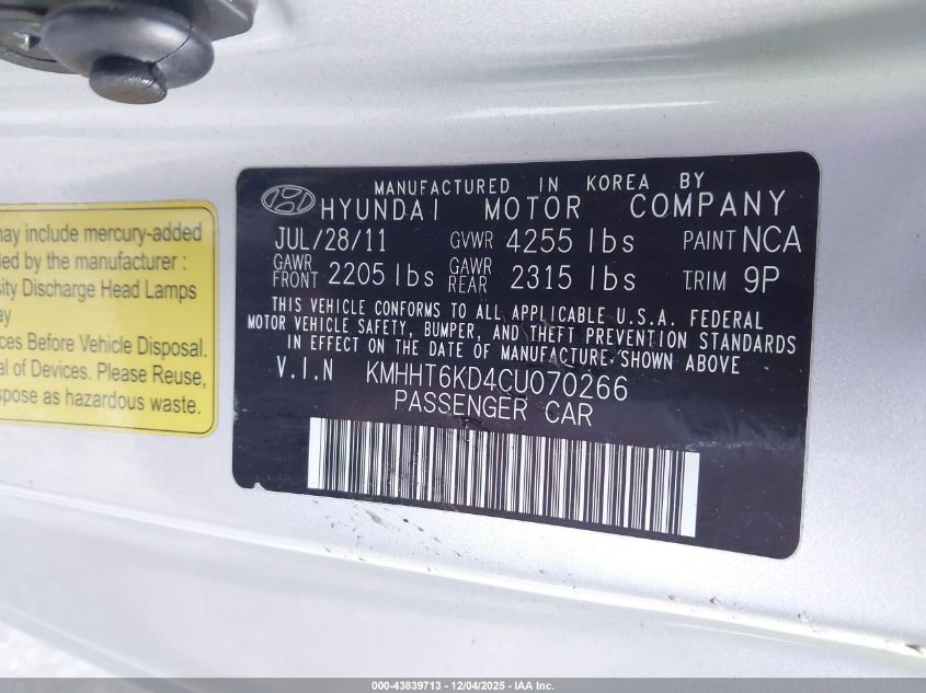 Колір СрібнийЦиліндри 4Привід Задній привідVIN KMHHT6KD4CU070266Стан Заводиться та їде (перевірено)Ушкодження Передня або задня AutoRIA