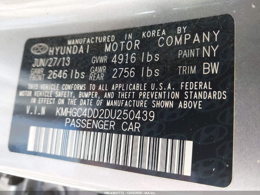 2013 HYUNDAI GENESIS 3.8L
