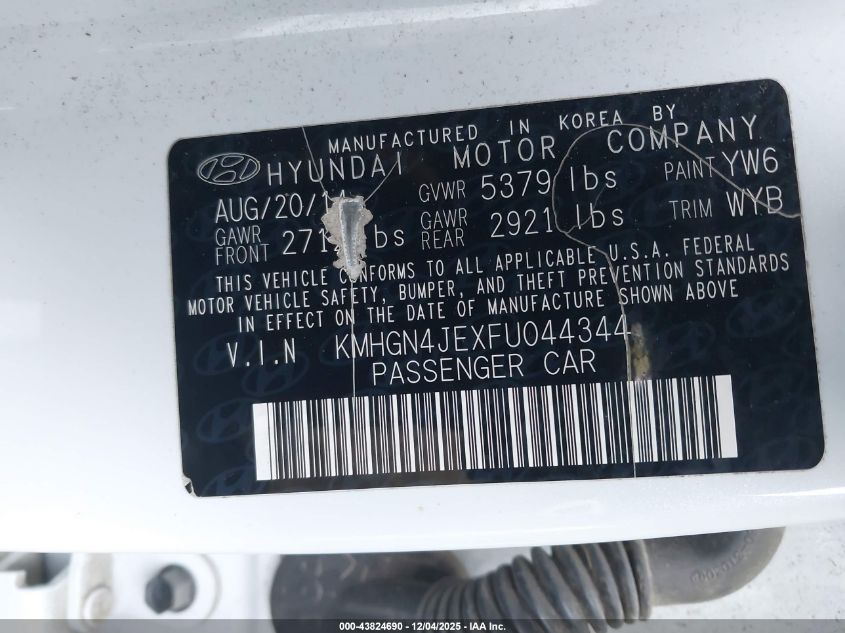 2015 HYUNDAI GENESIS 2015 року Бензин, 3.8, Задній привід, vin - KMHGN4JEXFU044344 з США
