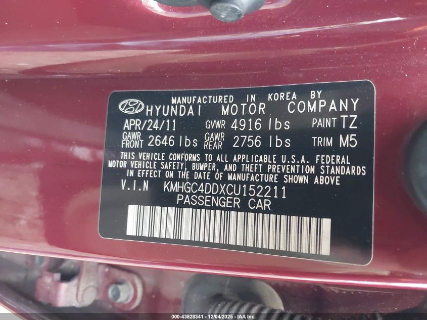 2012 HYUNDAI GENESIS 3.8L