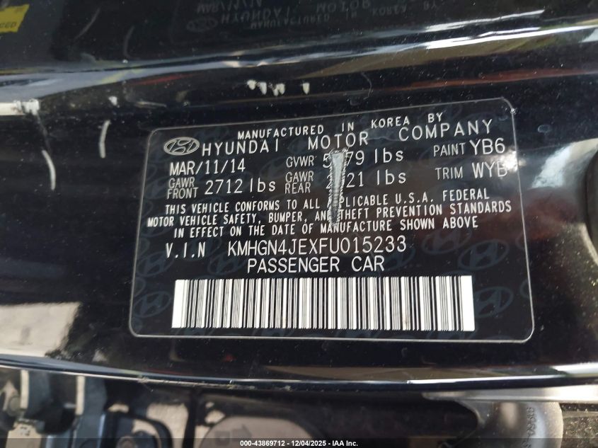 2015 HYUNDAI GENESIS 2015 року Бензин, 3.8, Задній привід, vin - KMHGN4JEXFU015233 з США