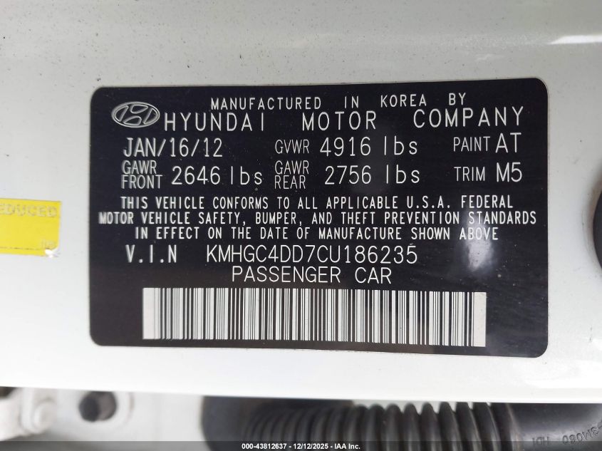 2012 HYUNDAI GENESIS 2012 року Бензин, 3.8, Задній привід, vin - KMHGC4DD7CU186235 з США