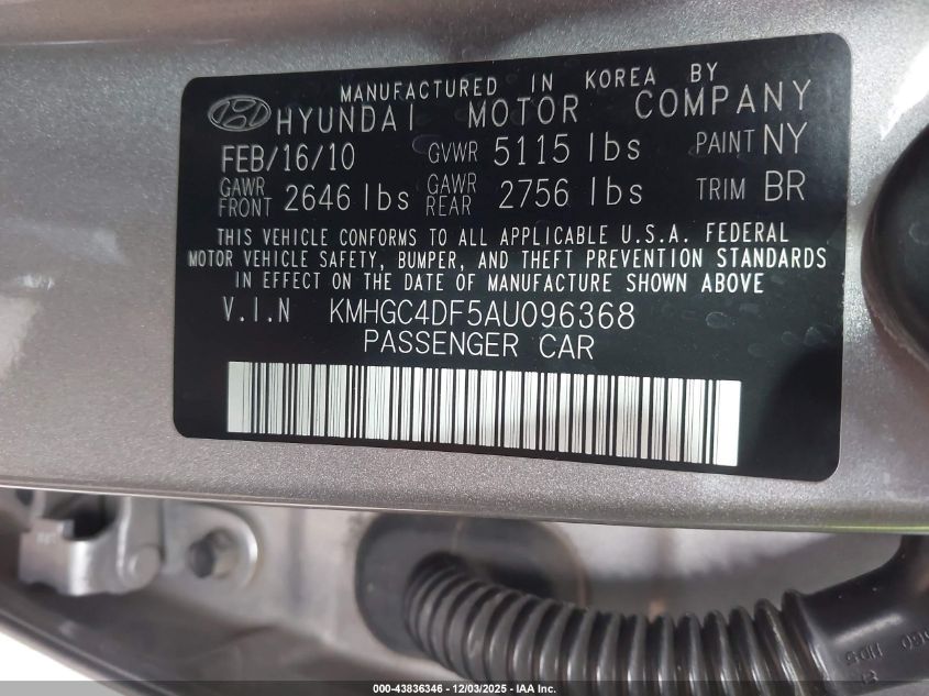 2010 HYUNDAI GENESIS 2010 року Бензин, 4.6, Задній привід, vin - KMHGC4DF5AU096368 з США