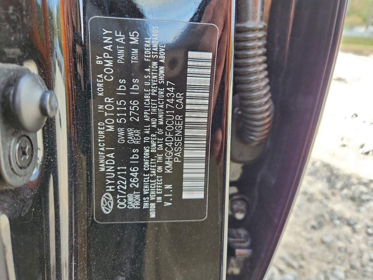 2012 HYUNDAI GENESIS 3.8L
