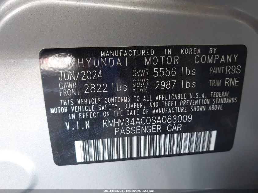 2025 HYUNDAI IONIQ 6 2025 року Електричний, 0.0, Повний привід, vin - KMHM34AC0SA083009 з США