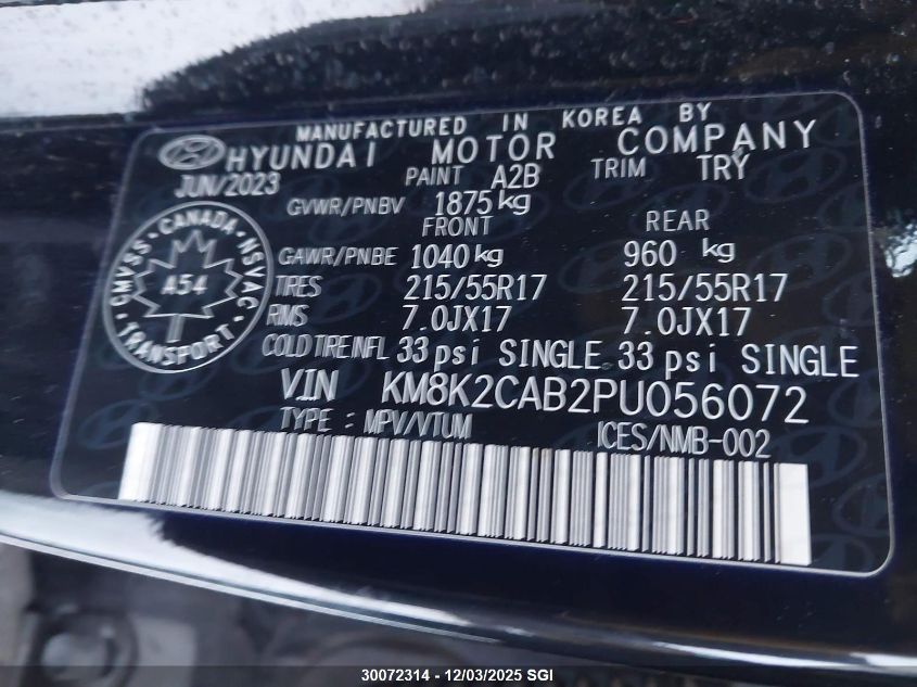 2023 HYUNDAI KONA 2023 року Бензин, , Повний привід, vin - KM8K2CAB2PU056072 з США