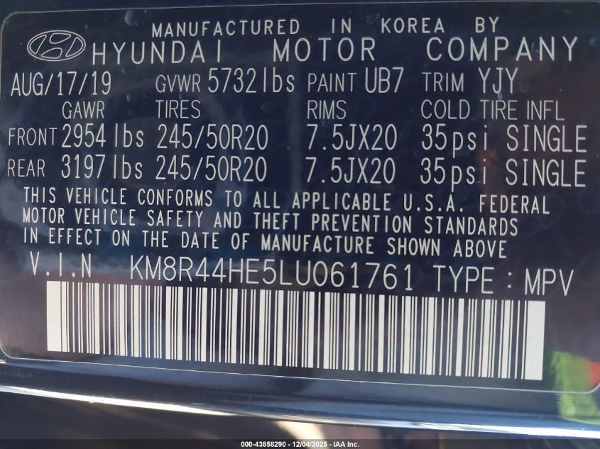 2020 HYUNDAI PALISADE 2020 року Бензин, 3.8, Передній привід, vin - KM8R44HE5LU061761 з США