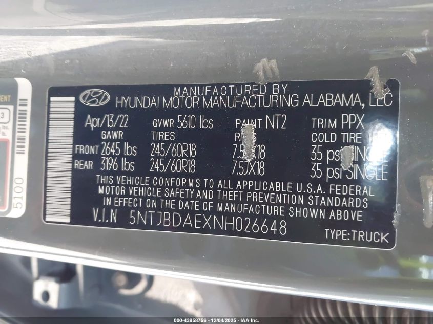 Колір СірийЦиліндри 4Привід Повний привідVIN 5NTJBDAEXNH026648Стан Заводиться та їде (перевірено)Ушкодження Передня і задня AutoRIA