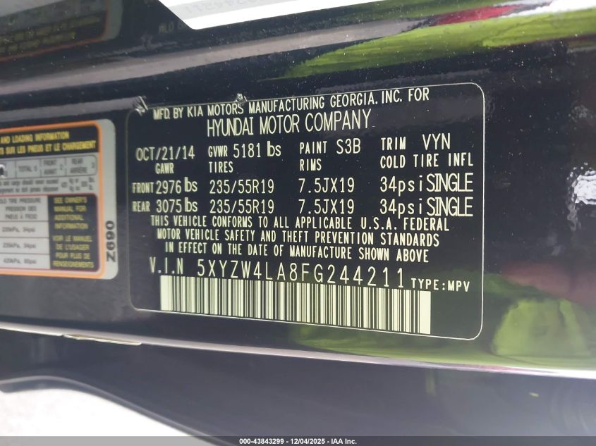 2015 HYUNDAI SANTA FE S