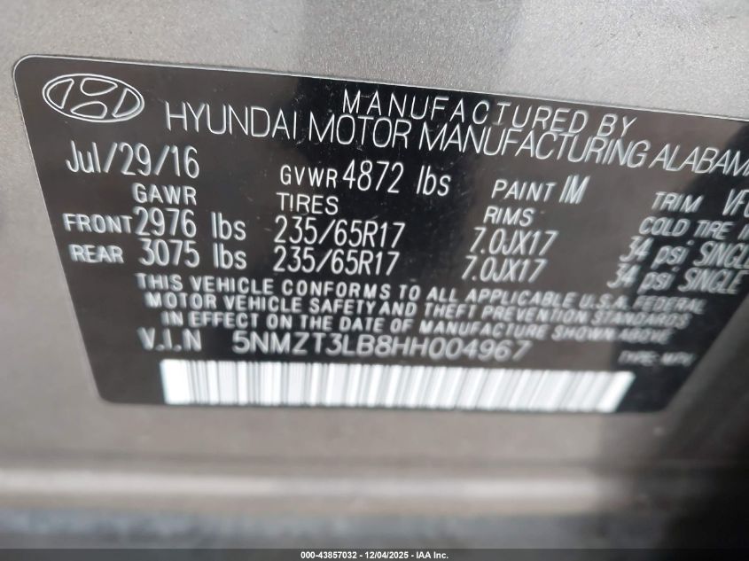 2017 HYUNDAI SANTA FE S