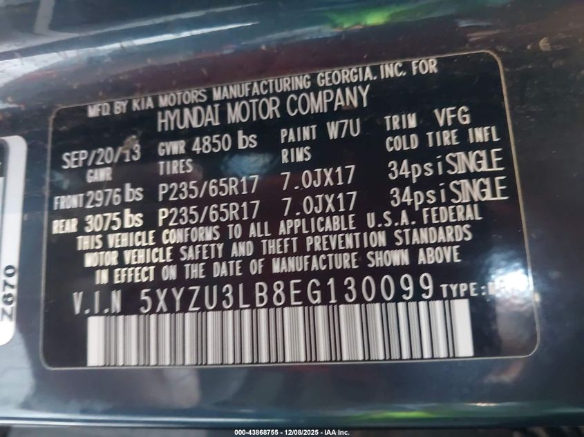2014 HYUNDAI SANTA FE GLS