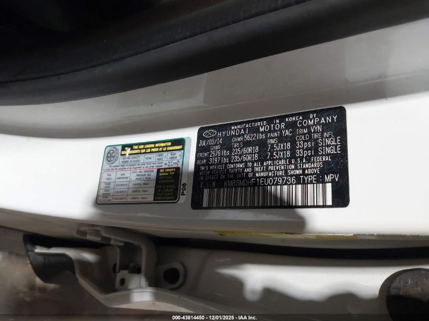 2014 HYUNDAI SANTA FE 2014 року Бензин, 3.3, Повний привід, vin - KM8SMDHF1EU079736 з США