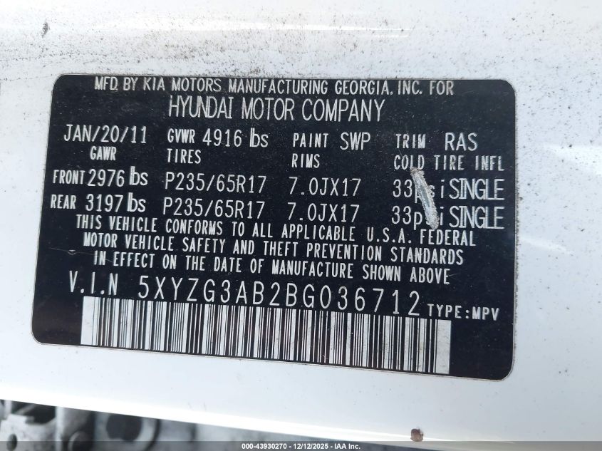 Колір БілийЦиліндри 4Привід Передній привідVIN 5XYZG3AB2BG036712Стан СтаціонарноУшкодження Передня або задня AutoRIA