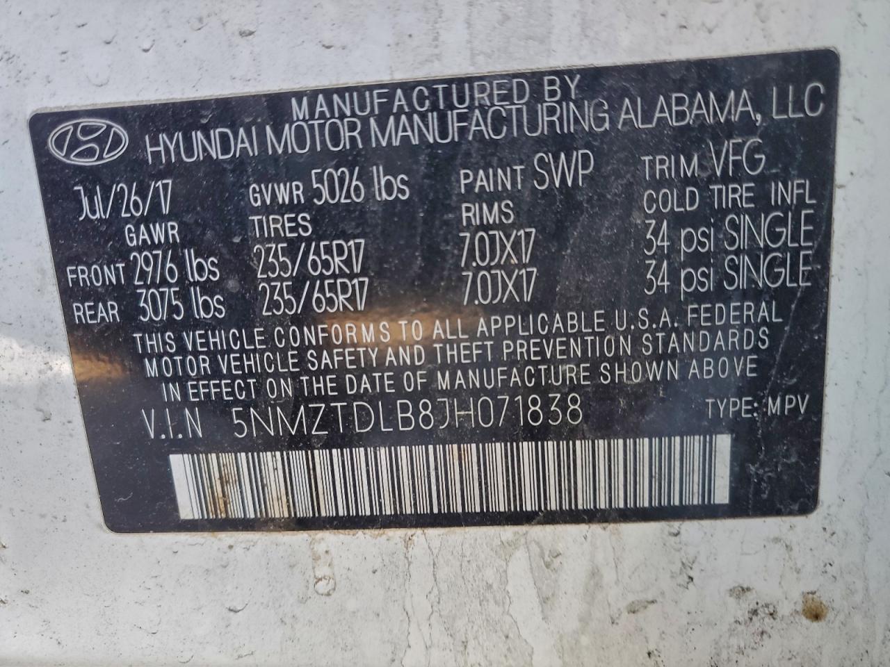 2018 HYUNDAI SANTA FE 2018 року Бензин, 2.4, Повний привід, vin - 5NMZTDLB8JH071838 з США