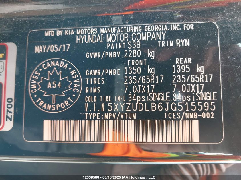 2018 HYUNDAI SANTA FE 2018 року Бензин, , Повний привід, vin - 5XYZUDLB6JG515595 з США