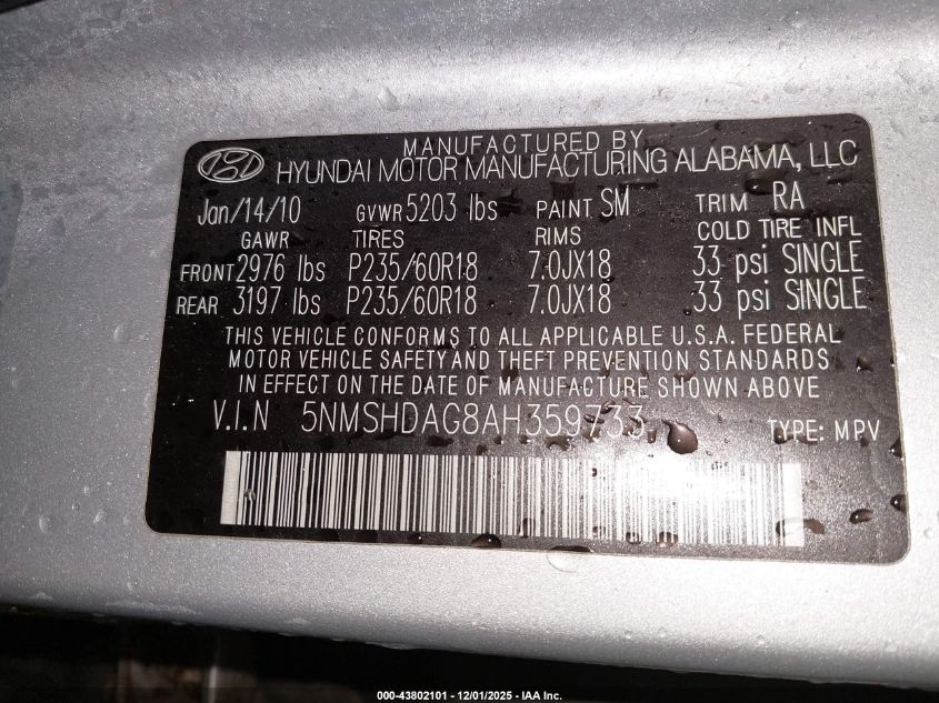 2010 HYUNDAI SANTA FE 2010 року Бензин, 3.5, Повний привід, vin - 5NMSHDAG8AH359733 з США