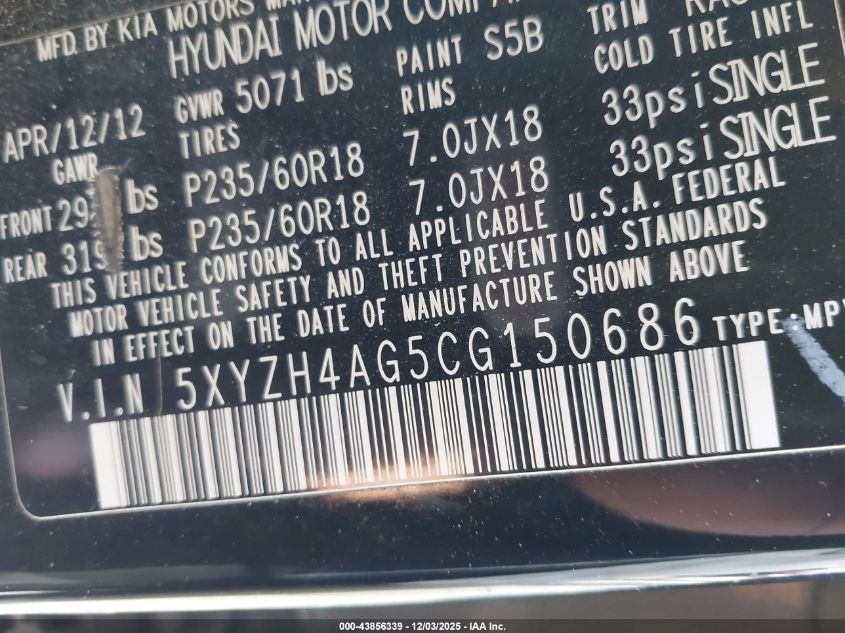 Колір ЧорнийЦиліндри 6Привід Передній привідVIN 5XYZH4AG5CG150686Стан Заводиться та їде (перевірено)Ушкодження Передня або задня AutoRIA
