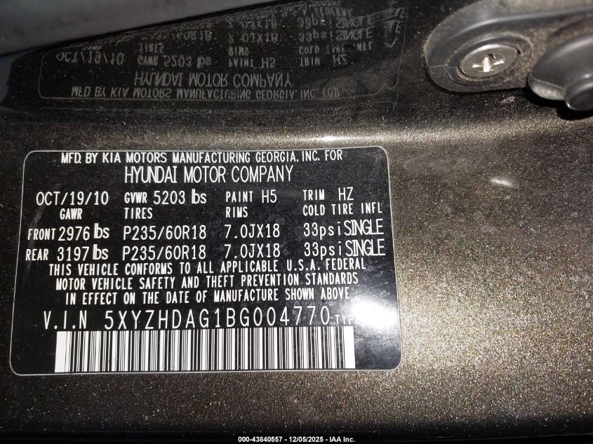 2011 HYUNDAI SANTA FE 2011 року Бензин, 3.5, Повний привід, vin - 5XYZHDAG1BG004770 з США