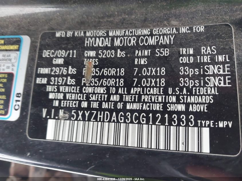 2012 HYUNDAI SANTA FE 2012 року Бензин, 3.5, Повний привід, vin - 5XYZHDAG3CG121333 з США