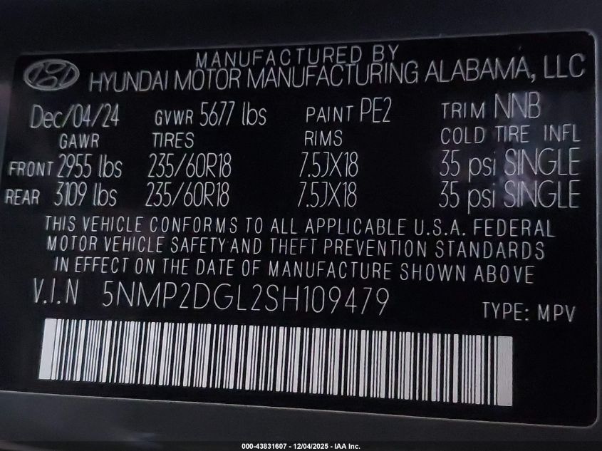 2025 HYUNDAI SANTA FE 2025 року Бензин, 2.5, Повний привід, vin - 5NMP2DGL2SH109479 з США