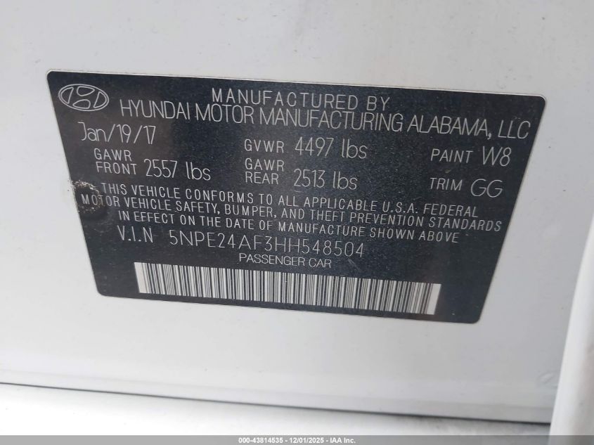 2017 HYUNDAI SONATA 2017 року Бензин, 2.4, Передній привід, vin - 5NPE24AF3HH548504 з США